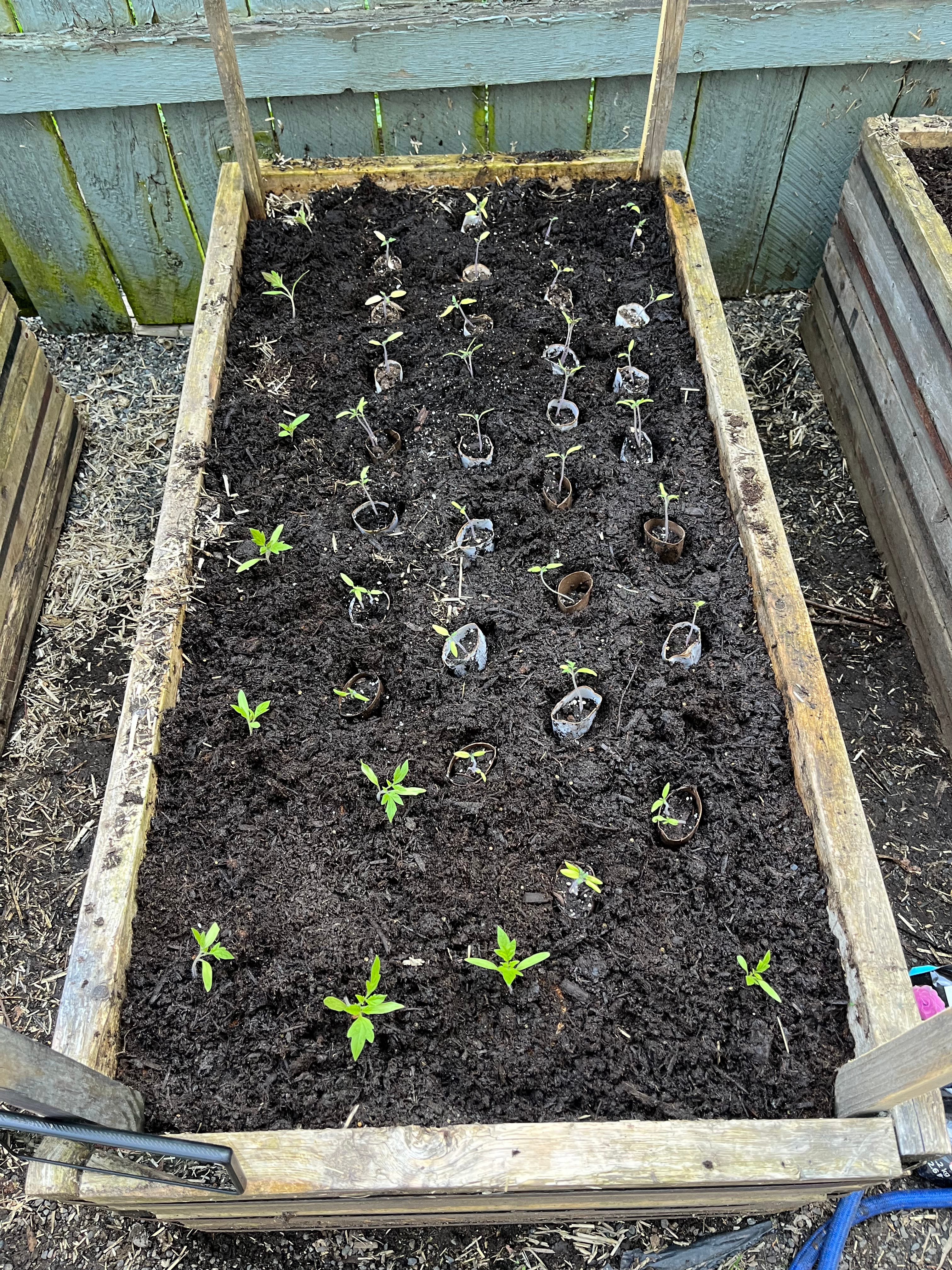 We added another layer of compost, manure, and potting soil onto our garden beds and containers and planted the following seeds over the last couple of weeks: