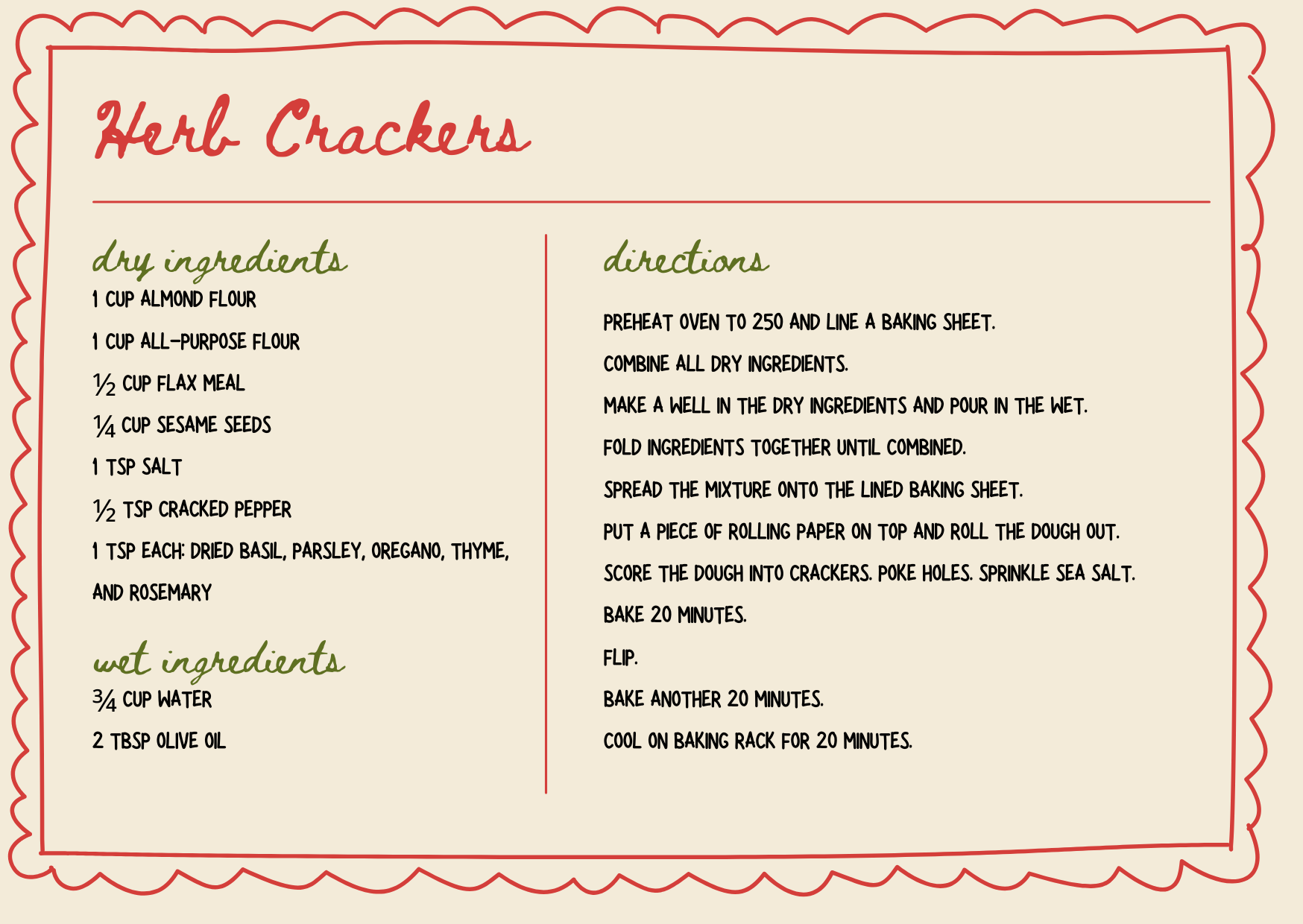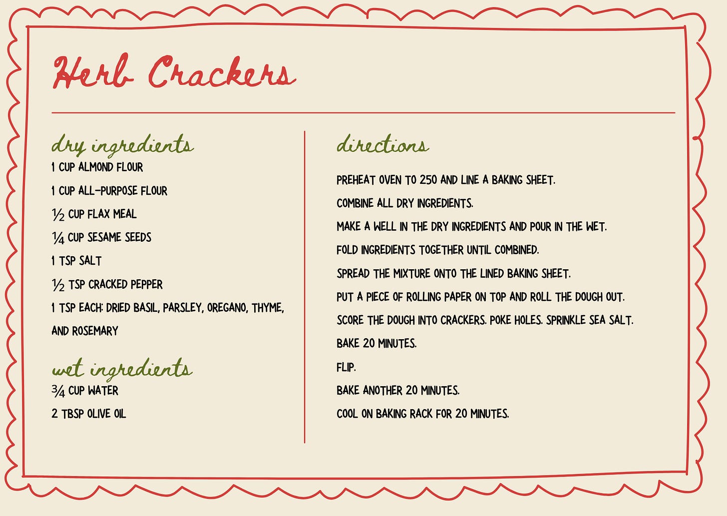 Also pictured above were my homemade crackers. Here’s the recipe:
